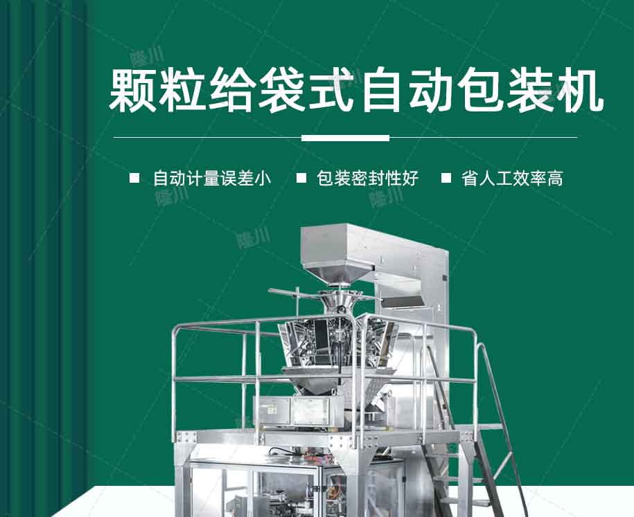 给袋式包装机它代替了手工包装,为大型企业、中小规模企业实现了包装自动化,操作人员只要将做好的一个一个的袋子,一次性将几百个袋子放在设备的取袋部,设备机械爪会自动的取袋、列印日期、开袋、给计量装置信号计量并落料、封口、输出。